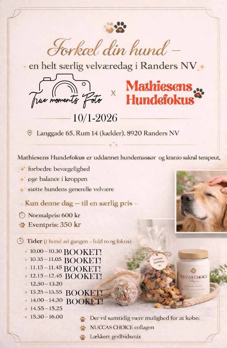 For booking, kontakt Mathiesens HundeFokus direkte/eller skriv en mail til True Moments Foto og vi sætter kontakt igang.
